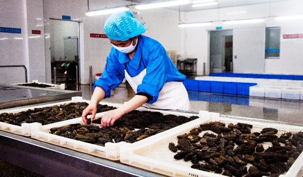 公司于2007年投資4800萬(wàn)元,建設(shè)占地面積280畝,建筑面積10000平方米的加工廠,工廠擁有國(guó)內(nèi)領(lǐng)先科技水平的真空凍干生產(chǎn)線(xiàn),速凍生產(chǎn)線(xiàn)、冷風(fēng)干燥,熱風(fēng)干燥生產(chǎn)線(xiàn)加工,大大提高了海產(chǎn)品的科技含量和附加值。設(shè)計(jì)加工能力1000噸每年。加工主要品種有海參、對(duì)蝦、魚(yú)類(lèi)、海蜇、貝類(lèi)。目前年加工量100噸,產(chǎn)值8000萬(wàn)元。同時(shí)與中國(guó)海洋大學(xué)合作精深加工生產(chǎn)的“錦上堂”海珍品系列產(chǎn)品21種,并進(jìn)行校企聯(lián)合、研發(fā)、合作生產(chǎn)遼參膠囊、速溶海參粉已被申請(qǐng)專(zhuān)利。從種苗到餐桌的全產(chǎn)業(yè)鏈產(chǎn)品。先后被推選為錦州市民最信賴(lài)的放心食品、遼寧省著名商標(biāo)、遼寧省名牌產(chǎn)品等。